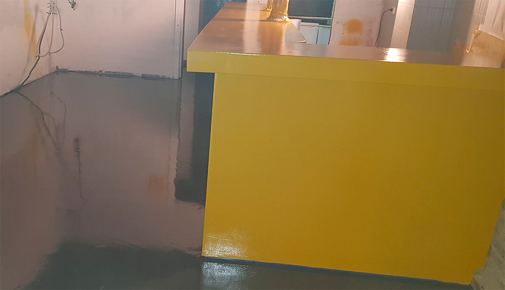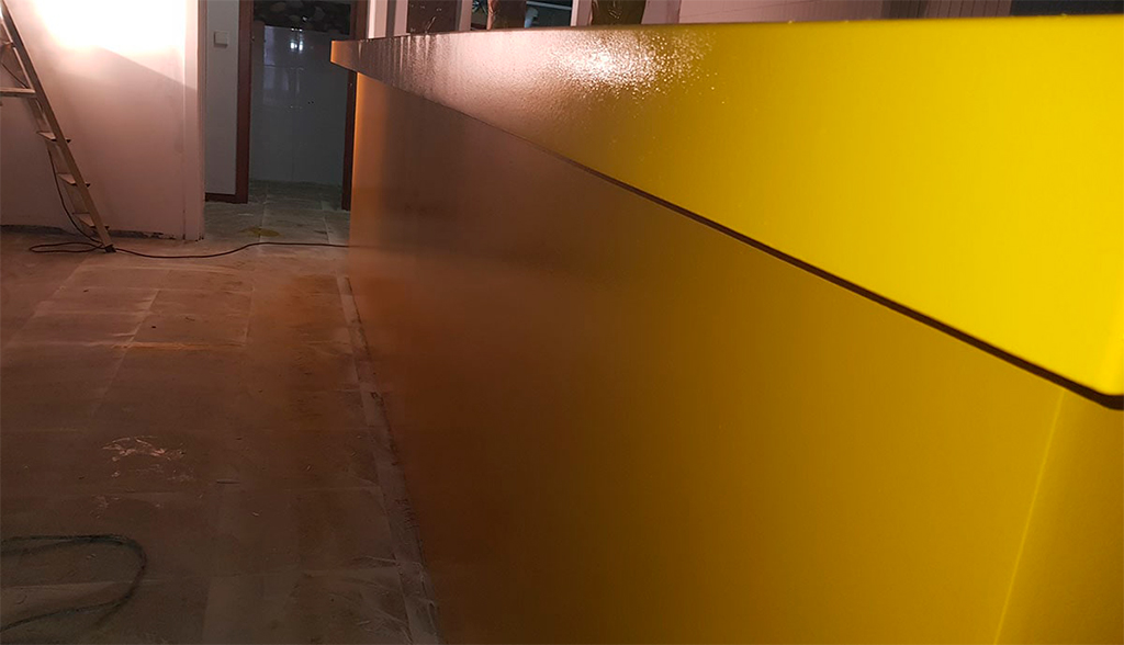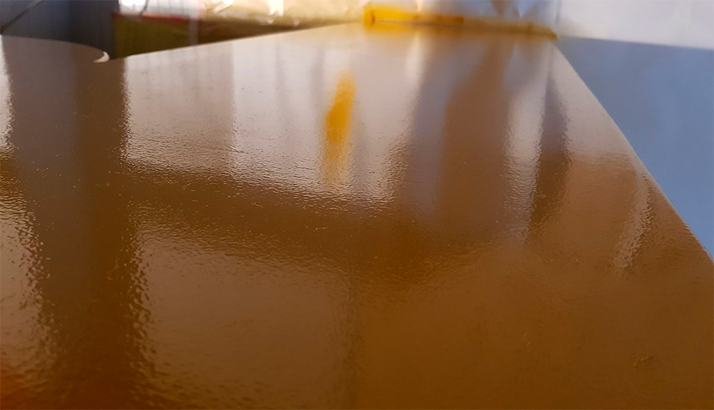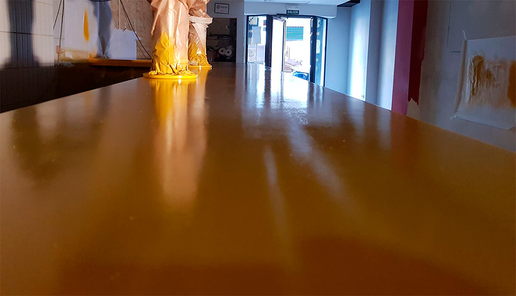 Para la barra del local aplicamos resinas de poliuretano con acabado en brillo, aconsejable por su excelente resistencia a la abrasión y tracción.
