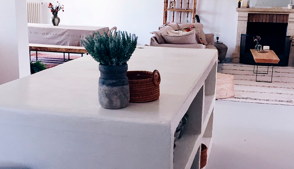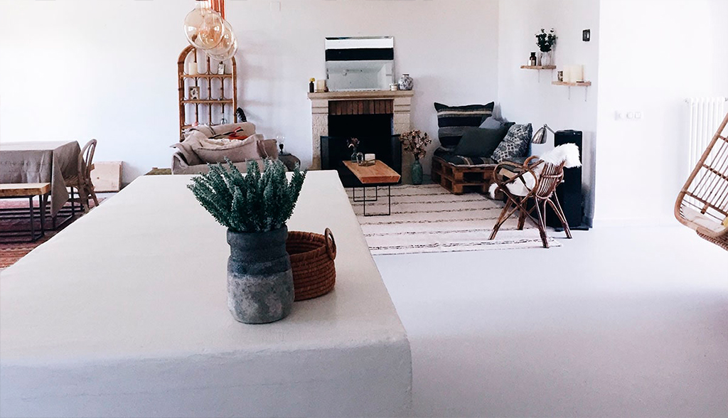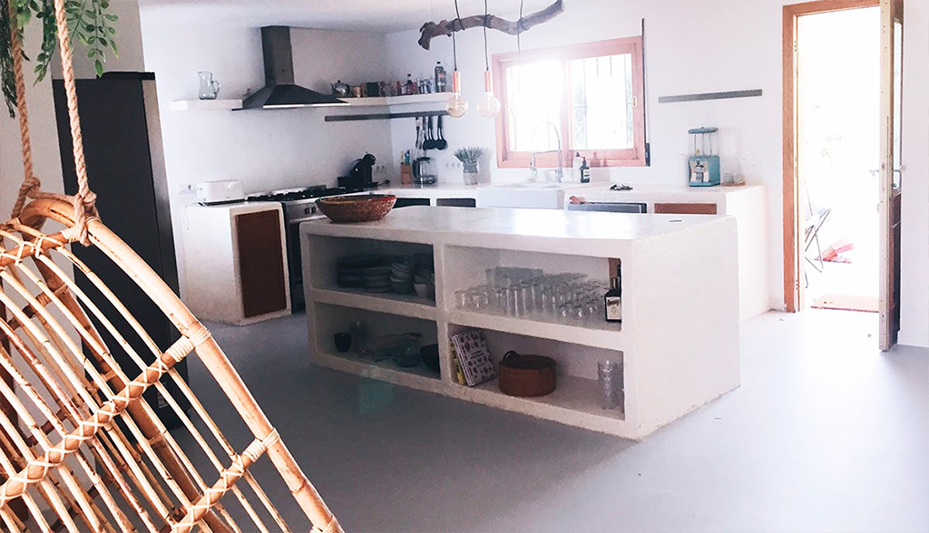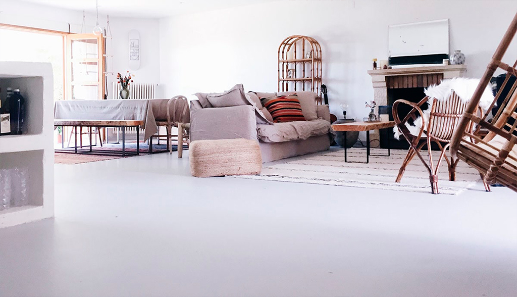 Utilizamos el pavimento continuo decorativo, SIKAFLOOR COMFORT sobre un suelo antiguo de gres de varias formas y colores en los diferentes espacios de la vivienda, incluidas las escaleras y zonas exteriores para dar uniformidad a todo el conjunto, logrando un espacio cómodo, cálido y respetuoso con el entorno al mantener la rusticidad.